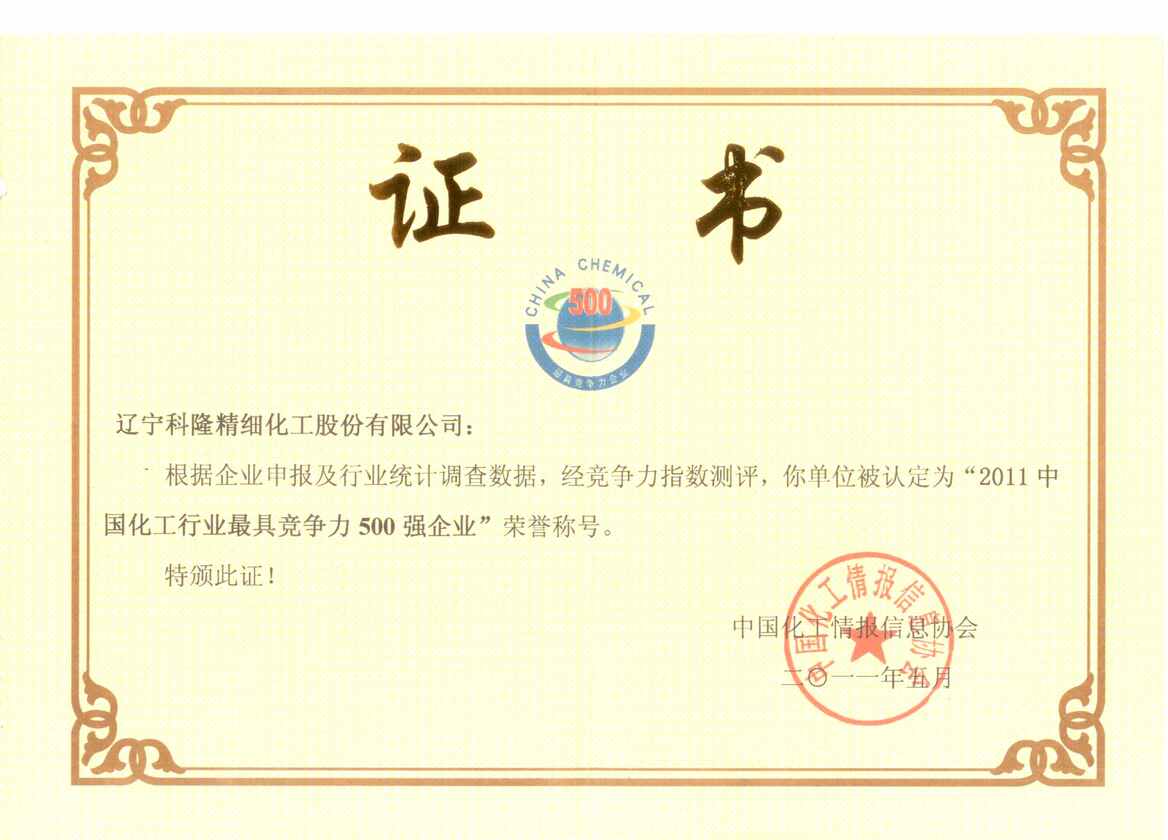 2011年中國化工行業最具競爭力500強企業