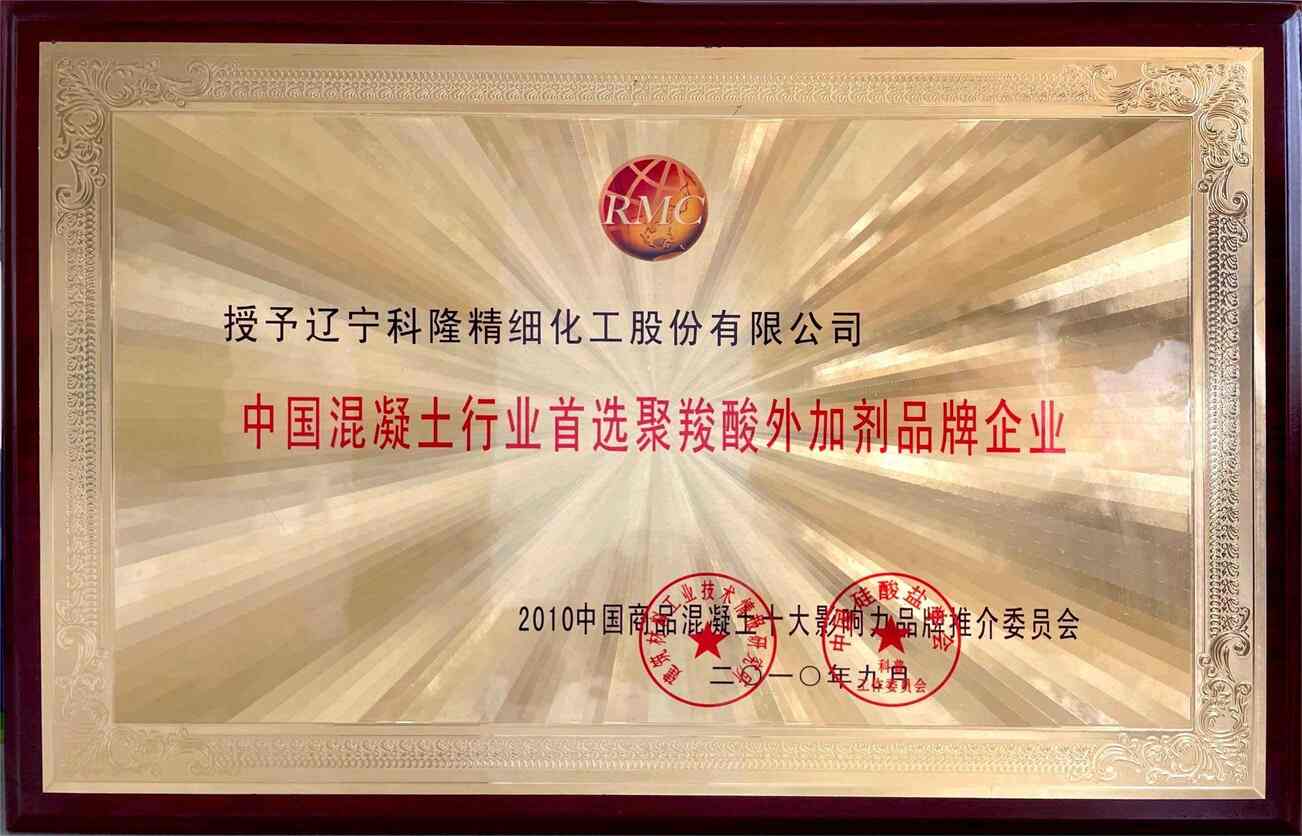2010中國混凝土行業首選聚羧酸外加劑品牌企業